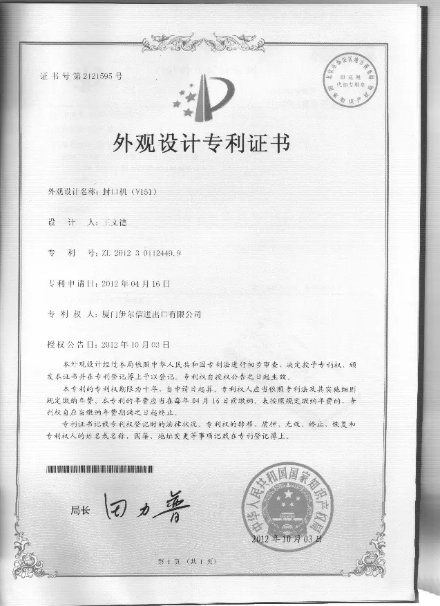 Previous: Certificate of Utility Model Patent